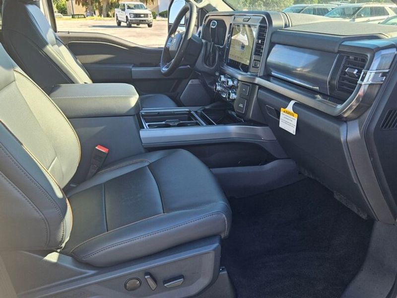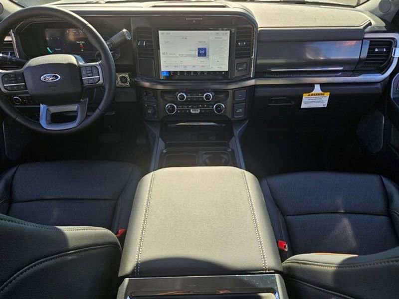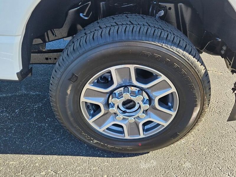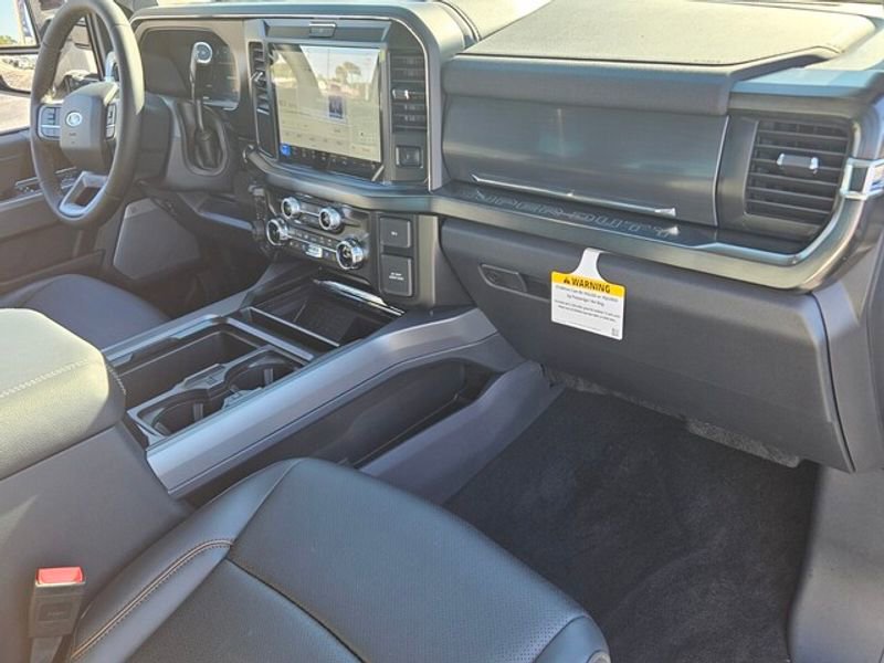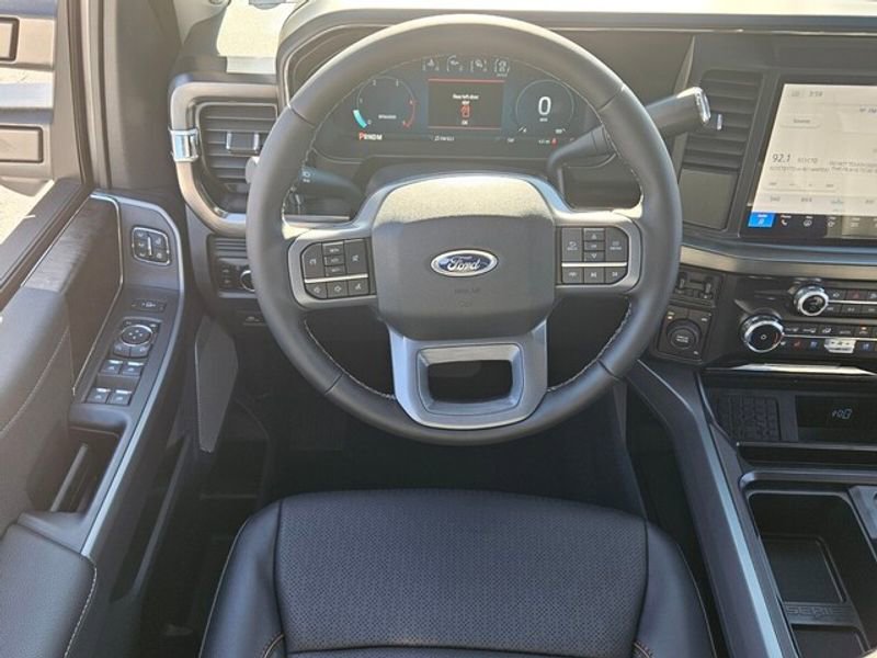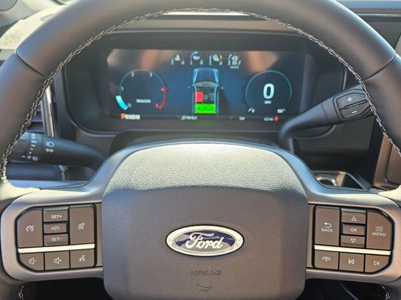 The 2026 Ford Super Duty F-250 SRW Lariat is equipped with an Intercooled Turbo Diesel V-8 6.7 L/406 engine, designed to deliver robust performance and exceptional towing capabilities. This powertrain is engineered to handle demanding tasks, making it a suitable choice for those requiring substantial hauling and towing power. The Lariat trim emphasizes durability and functionality, catering to users who prioritize strength and reliability in their vehicle.