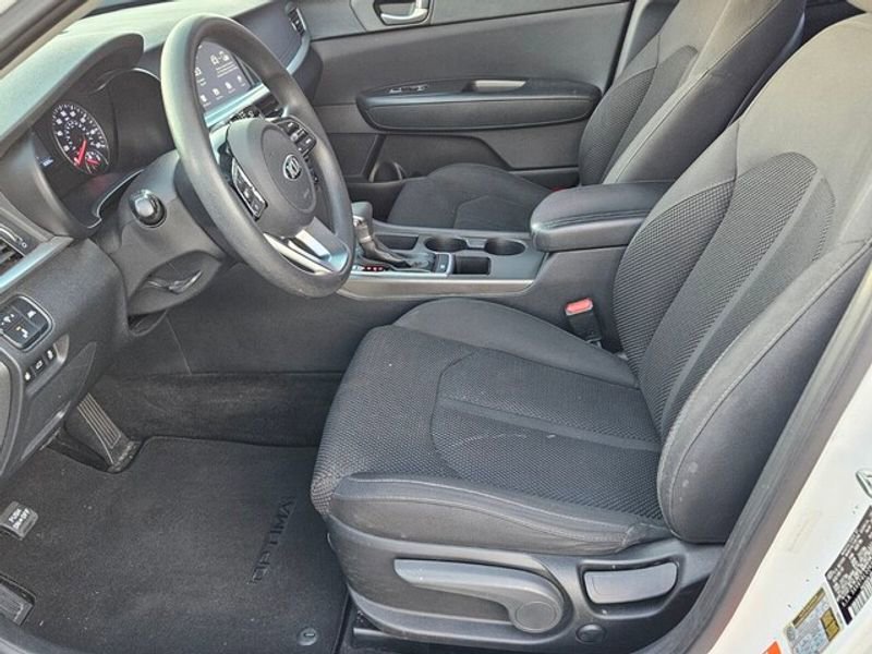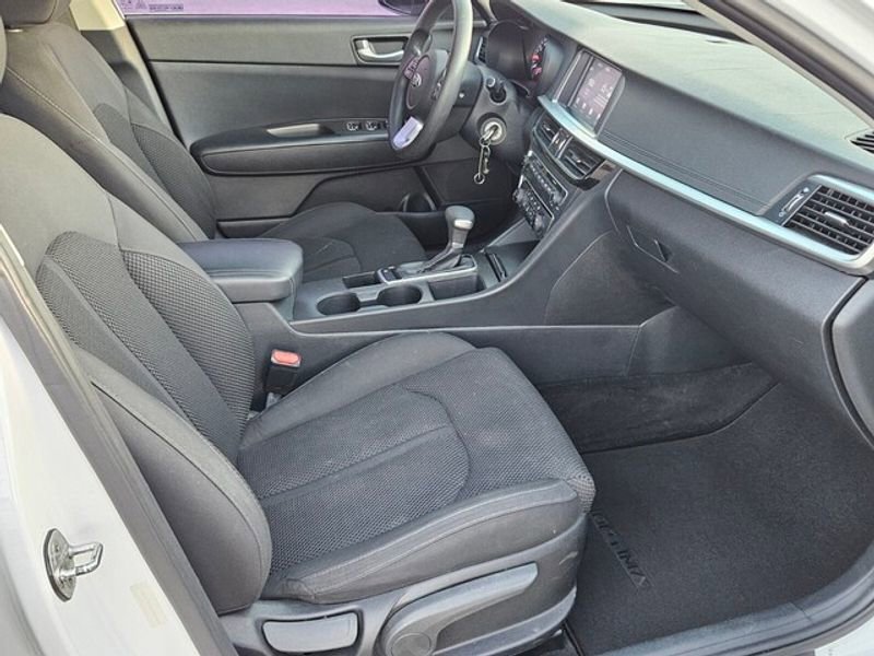 This 2019 Kia Optima  has a clean AutoCheck report, ensuring its impeccable vehicle history. Apple CarPlay: Seamless smartphone integration for the Kia Optima - stay connected and entertained on the go! The rear parking assist technology on this 2019 Kia Optima  will put you at ease when reversing.  The system alerts you as you get closer to an obstruction. Protect this Kia Optima from unwanted accidents with a cutting edge backup camera system. This model offers Android Auto for seamless smartphone integration. Bluetooth technology is built into this mid-size car, keeping your hands on the steering wheel and your focus on the road. This model stays safely in its lane with Lane Keep Assist. Front wheel drive on this Kia Optima gives you better traction and better fuel economy. The vehicle has a 4 Cyl, 2.4L high output engine. This vehicle shines with clean polished lines coated with an elegant white finish.