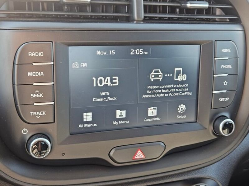 This model offers Apple CarPlay for seamless connectivity. The Kia Soul's AutoCheck: 1 owner, assurance of single-owner history for peace of mind. This unit features a hands-free Bluetooth phone system. See what's behind you with the back up camera on this small suv. This model has a clean AutoCheck report, ensuring its impeccable vehicle history. The Kia Soul comes equipped with Android Auto for seamless smartphone integration on the road. This small suv projects refinement with a racy metallic gray exterior. It has a 4 Cyl, 2.0L high output engine. This model is front wheel drive. Set the temperature exactly where you are most comfortable in it. The fan speed and temperature will automatically adjust to maintain your preferred zone climate. This model is equipped with a gasoline engine. The Electronic Stability Control will keep you on your intended path. It features cruise control for long trips. The high efficiency automatic transmission shifts smoothly and allows you to relax while driving. 100% Transparent Pricing.