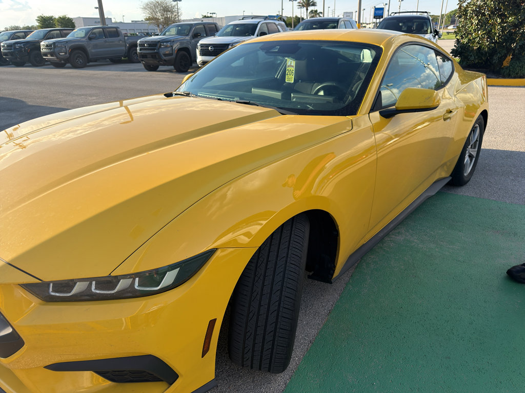 The state of the art park assist system will guide you easily into any spot. This model has only one previous owner, verified by AutoCheck. Start this Ford Mustang from inside with remote start. This 2024 Ford Mustang keeps you comfortable with Auto Climate. Protect it from unwanted accidents with a cutting edge backup camera system. The Ford Mustang features a hands-free Bluetooth phone system. It has a clean AutoCheck report. The Ford Mustang warns of approaching vehicles with Cross-Traffic Alert. This small car offers Apple CarPlay for seamless connectivity. This model offers Android Auto for seamless smartphone integration. The vehicle has a 4 Cyl, 2.3L high output engine. Enjoy the incredible handling with the rear wheel drive on this vehicle. Maintaining a stable interior temperature in this vehicle is easy with the climate control system. This Ford Mustang exudes confidence with an alluring deep yellow exterior. Enjoy the tried and true gasoline engine in it.