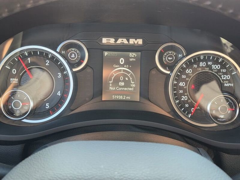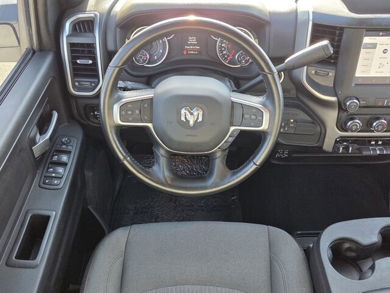 Quick Order Package 2HZ Big Horn. Level 1 Equipment Group: Google Android Auto; SiriusXM Radio Service; Bluetooth Handsfree Phone and Audio; Integrated Center Stack Radio; For Details. Visit DriveUconnect.com; For More Info. Call 800-643-2112; Leather Wrapped Steering Wheel; Rear Dome with On/off Switch Lamp; Front Fog Lamps; Integrated Voice Command with Bluetooth; Connectivity - US/Canada; Premium Cloth 40/20/40 Bench Seat; Glove Box Lamp; Auto Power-Folding Mirrors; Footwell Courtesy Lamp; 4G LTE Wi-Fi Hot Spot; GPS Antenna Input; Exterior Mirrors with Heating Element; Global Telematics Box Module; Mirror Running Lights; Uconnect 5 W Radio with 8.4" Display; 8.4" Touchscreen Display; Foam Bottle Insert (door Trim Panel); Black Exterior Mirrors; 18" X 8.0" Polished Aluminum Wheels; Apple CarPlay; Big Horn Instrument Panel Badge; Power Adjustable Convex Aux Mirrors; Forward and Reverse Utility Lights; Locking Lower Glove Box; Selectable Tire Fill Alert; SiriusXM Satellite Radio; Power Heated Fold Telescope Mirrors; Exterior Mirrors with Supplemental Signals; Steering Wheel Mounted Audio Controls; Exterior Mirrors Courtesy Lamps; Dual Glove Boxes; Center Hub; Power Adjust Mirrors; 2nd Row in Floor Storage Bins; Power Telescoping Mirrors. Quick Order Package 2GZ Big Horn. Premium Cloth 40/20/40 Bench Seat. Chrome Flat Cab-Length Side Steps. Anti-Spin Differential Rear Axle. Front Fog Lamps. Tow Hooks. **Equipment listed is based on original vehicle build and subject to change. Please confirm the accuracy of the included equipment by calling the dealer prior to purchase.** 100% Transparent Pricing.