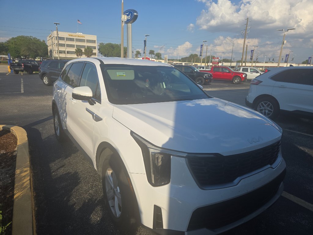 The vehicle has only one previous owner, verified by AutoCheck. The Kia Sorento employs advanced tech for collision avoidance, enhancing safety on the road. Start this Kia Sorento from inside with remote start. This model stays safely in its lane with Lane Keep Assist. See what's behind you with the back up camera on this model. It has a clean AutoCheck report. This 2025 Kia Sorento offers Apple CarPlay for seamless connectivity. This mid-size suv offers Android Auto for seamless smartphone integration. Bluetooth technology is built into the vehicle, keeping your hands on the steering wheel and your focus on the road. This model has a 4 Cyl, 2.5L high output engine. The vehicle embodies class and sophistication with its refined white exterior. This vehicle is front wheel drive. Maintaining a stable interior temperature in it is easy with the climate control system. Enjoy the tried and true gasoline engine in this 2025 Kia Sorento .