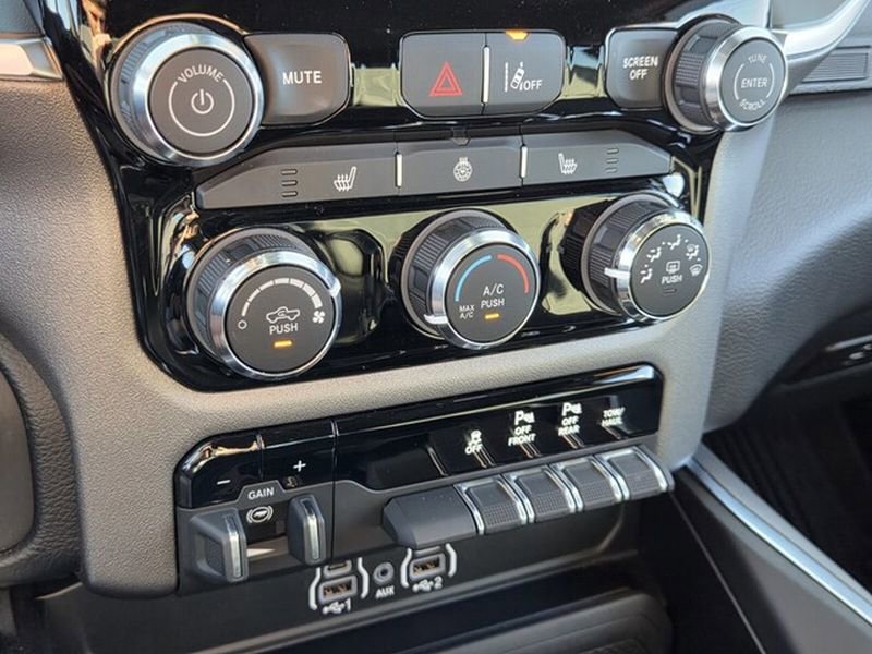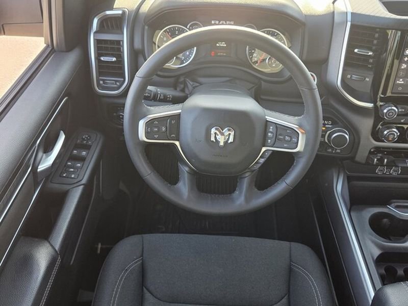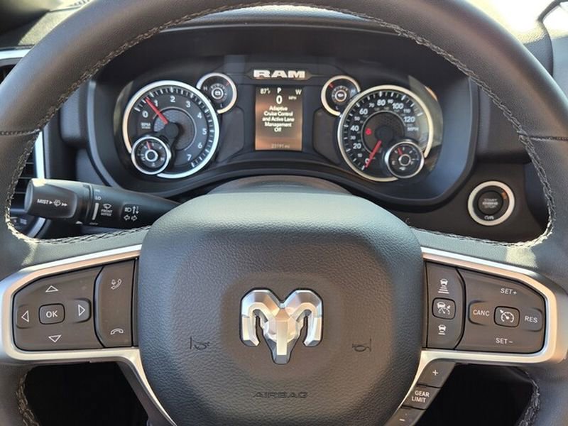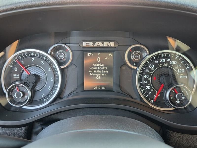 The vehicle's Forward Collision Warning system alerts the driver to potential front-end collisions, enhancing safety. The rear parking assist technology on this 2025 Ram 1500 will put you at ease when reversing. The system alerts you as you get closer to an obstruction. This unit offers Apple CarPlay for seamless connectivity. Protect this Ram 1500 from unwanted accidents with a cutting edge backup camera system. The Ram 1500 offers Android Auto for seamless smartphone integration. It is pure luxury with a heated steering wheel. This model has only one previous owner, verified by AutoCheck. This 1/2 ton pickup's Lane Departure Warning keeps you safe by alerting you when you drift from your lane. Never get into a cold vehicle again with the remote start feature on the Ram 1500. This Ram 1500 has automated speed control that adjusts to maintain a safe following distance, enhancing highway driving convenience. An off-road package is equipped on this model.