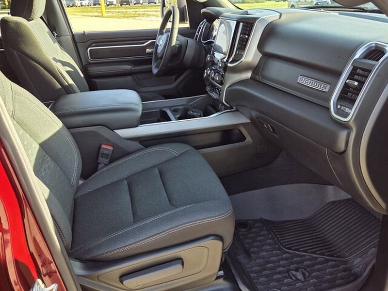 Quick Order Package 21Z Big Horn. Big Horn Level 1 Equipment Group: 400W Inverter; Rear Window Defroster; Rear View Auto Dim Mirror; Power Adjustable Pedals; Leather Wrapped Steering Wheel; Rear Power Sliding Window; Exterior Mirrors with Supplemental Signals; Steering Wheel Mounted Audio Controls; Exterior Mirrors Courtesy Lamps; Glove Box Lamp; Auto Power-Folding Mirrors; Exterior Mirrors with Heating Element; Auto Dim Exterior Driver Mirror; 115V Auxiliary Power Outlet; Universal Garage Door Opener; Heated Front Seats; Heated Steering Wheel; Black Exterior Mirrors; Power Adjust 8-Way Driver Seat; 2nd Row in Floor Storage Bins; Convex Wide-Angle Exterior Mirror Insert; Black Premium Power Mirrors; Sun Visors with Illuminated Vanity Mirrors; Power 2-Way Driver Lumbar Adjust. Off Road Group. Sport Appearance Package: 275/55R20 OWL All Season Tires; Deluxe Cloth Bucket Seats; Grille Surround 1 Body Color Texture 1 Black; Body Color Tailgate Handle; Black Interior Accents; Body Color Front Bumper; Body Color Door Handles; RAM Grille Badge - Chrome; Body Color Rear Bumper with Step Pads. Quick Order Package 23Z Big Horn: Big Horn Badge. 20" X 9" Aluminum Chrome Clad Wheels. Deluxe Cloth Bucket Seats. E-Locker Rear Axle. 33 Gallon Fuel Tank. Trailer Brake Control. Delmonico Red Pearlcoat. MOPAR Front and Rear Rubber Floor Mats. 3.55 Rear Axle Ratio. **Equipment listed is based on original vehicle build and subject to change. Please confirm the accuracy of the included equipment by calling the dealer prior to purchase.** 100% Transparent Pricing.
